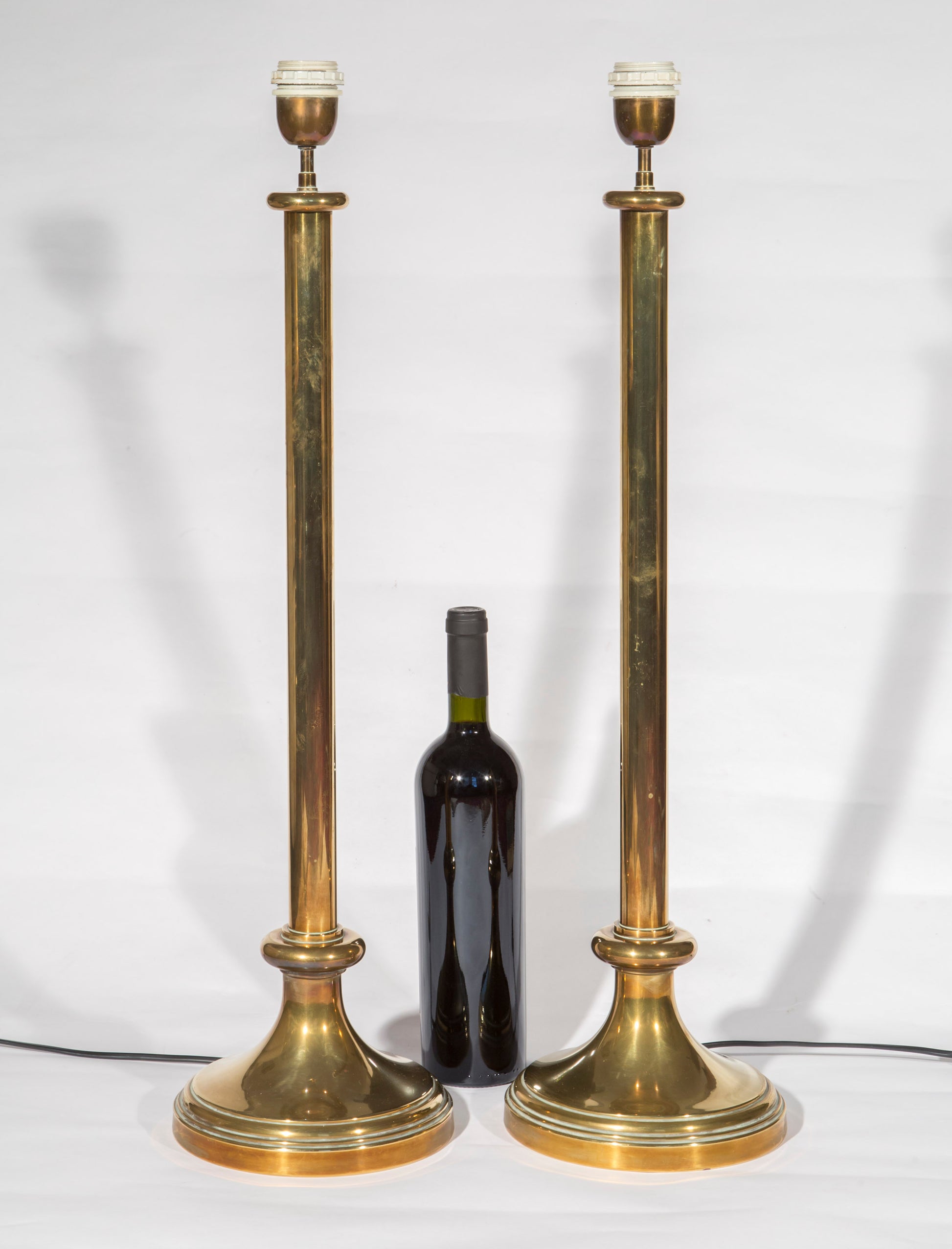 A large pair of very smart brass table lamps, probably Italian, second half of the 20th century.