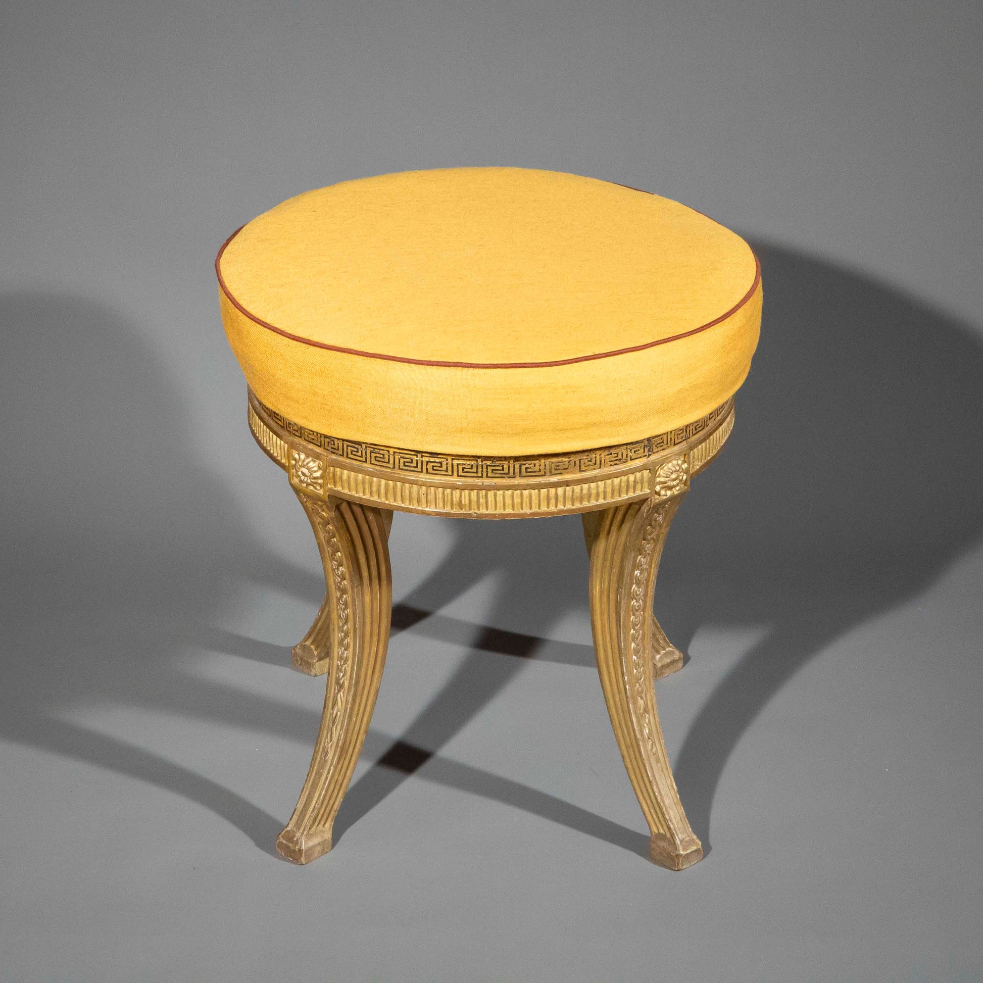 An extremely rare, late George III – early Regency era giltwood music stool of Klismos’ form, in the Grecian style of Henry Holland, originally supplied to Powderham Castle, Devon. English, circa 1790–1810