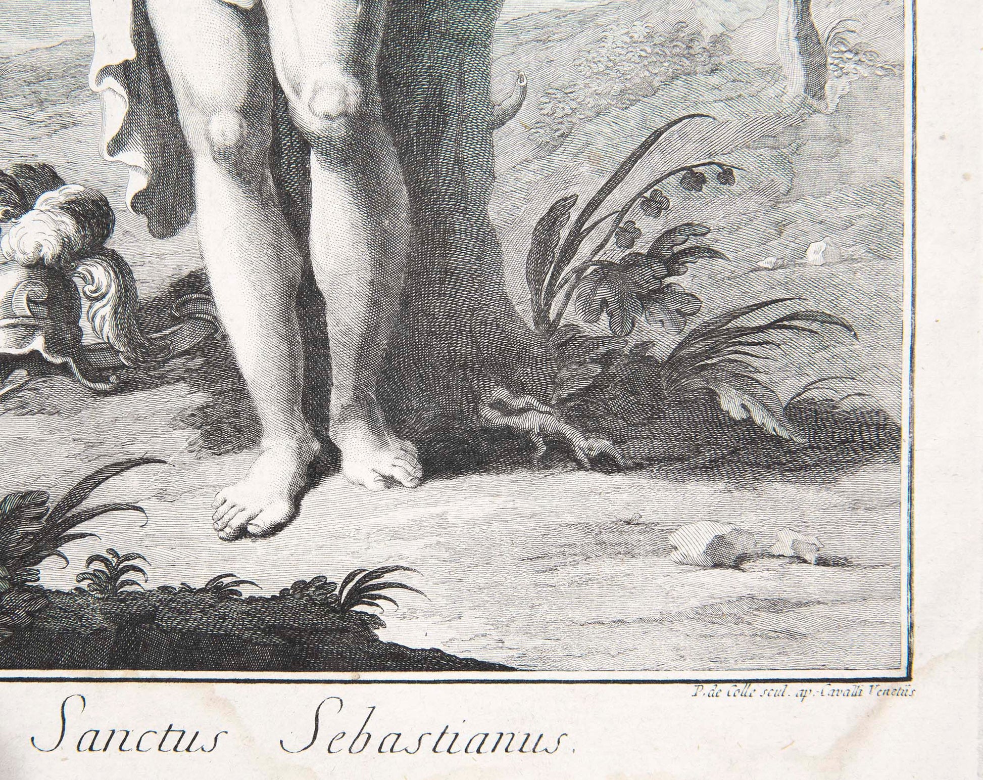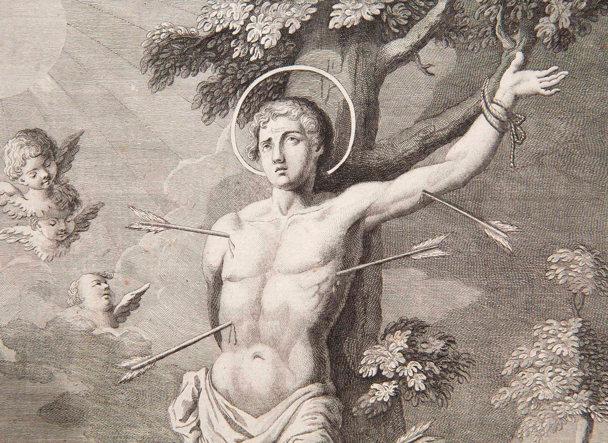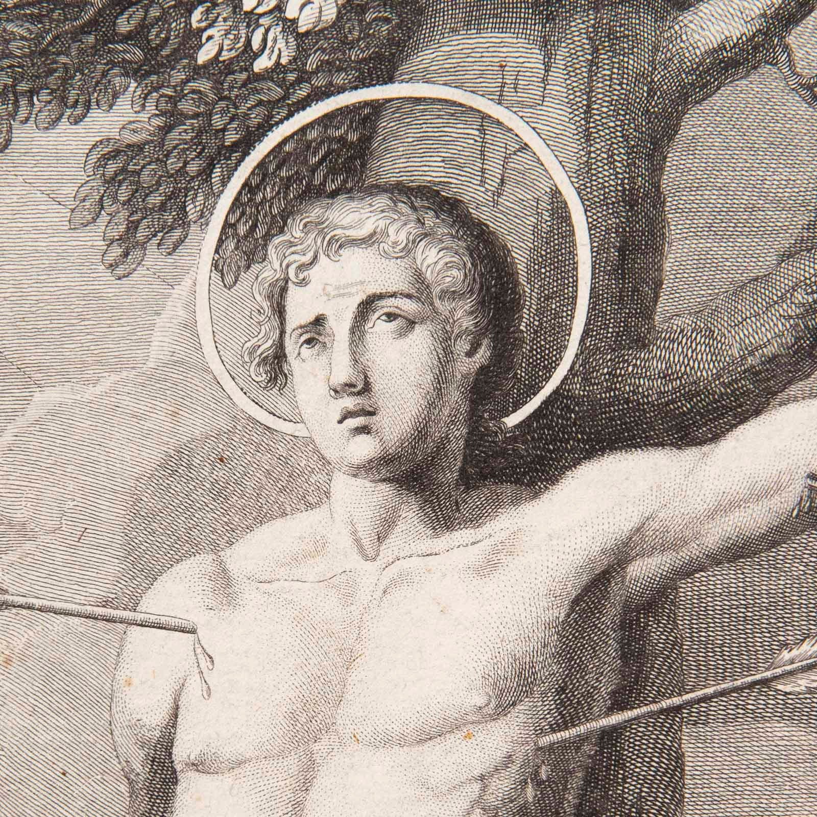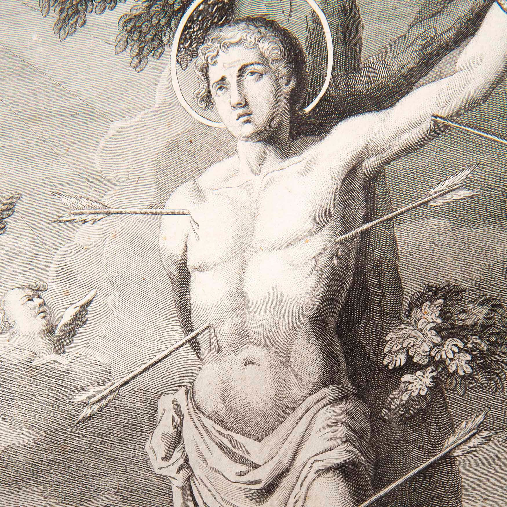 Exquisitely engraved in the 18th century, the print represents St. Sebastian, the saint much revered by men in Italy and France.