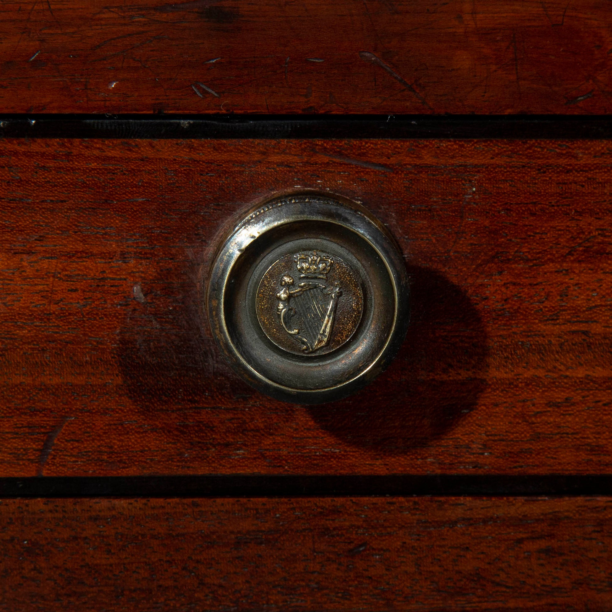 We like the unusual faux-bamboo and black-highlighted details, the rich patination and beautiful colour of the mahogany, and a most delightful original brass knob with tiny lyre decoration in the middle.