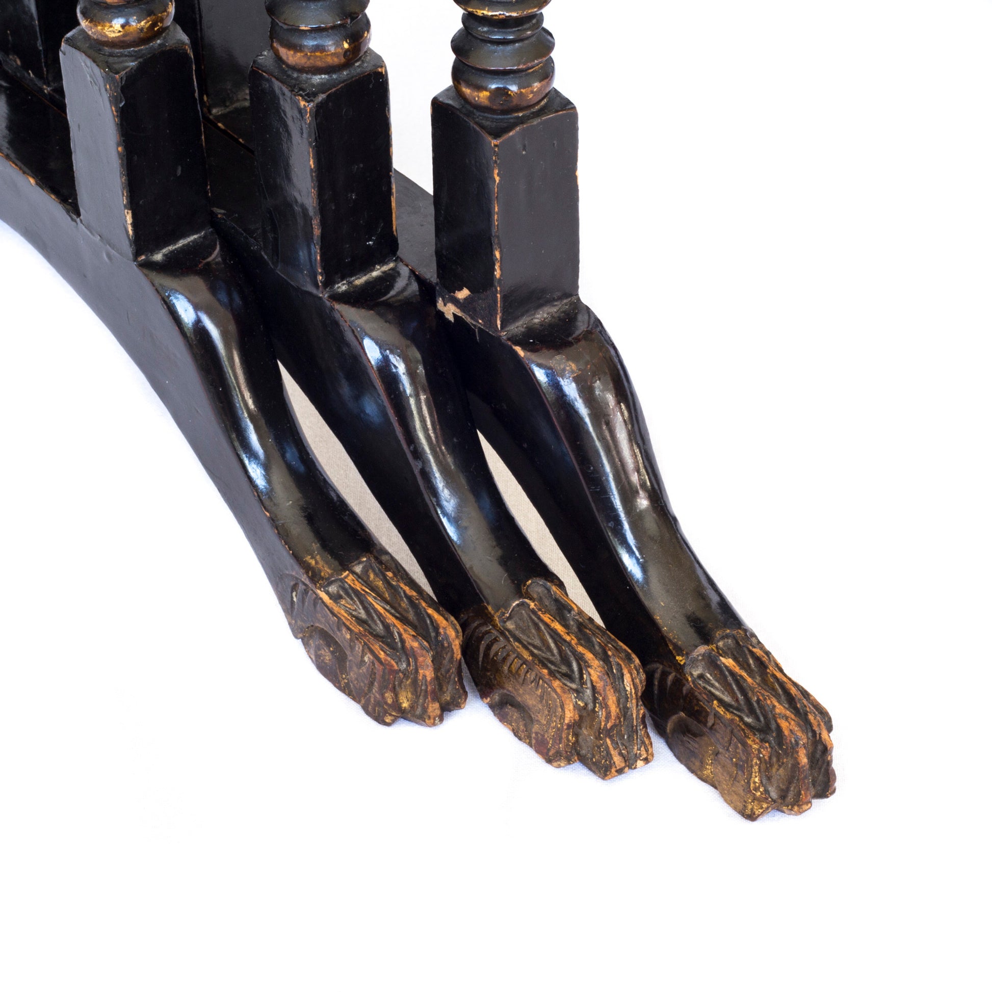 A Trio Nest of early 19th Century Chinese-Export Gilt And Polychrome-Lacquer Tables, having rectangular tops hand painted in the style known as Chinoiserie with local landscapes and village scenes surrounded by borders of Chinese Dragons and floral motifs, on ring-turned legs with gilt accents, joined by a curved stretcher, on downsplayed legs terminating in gilt paw feet.