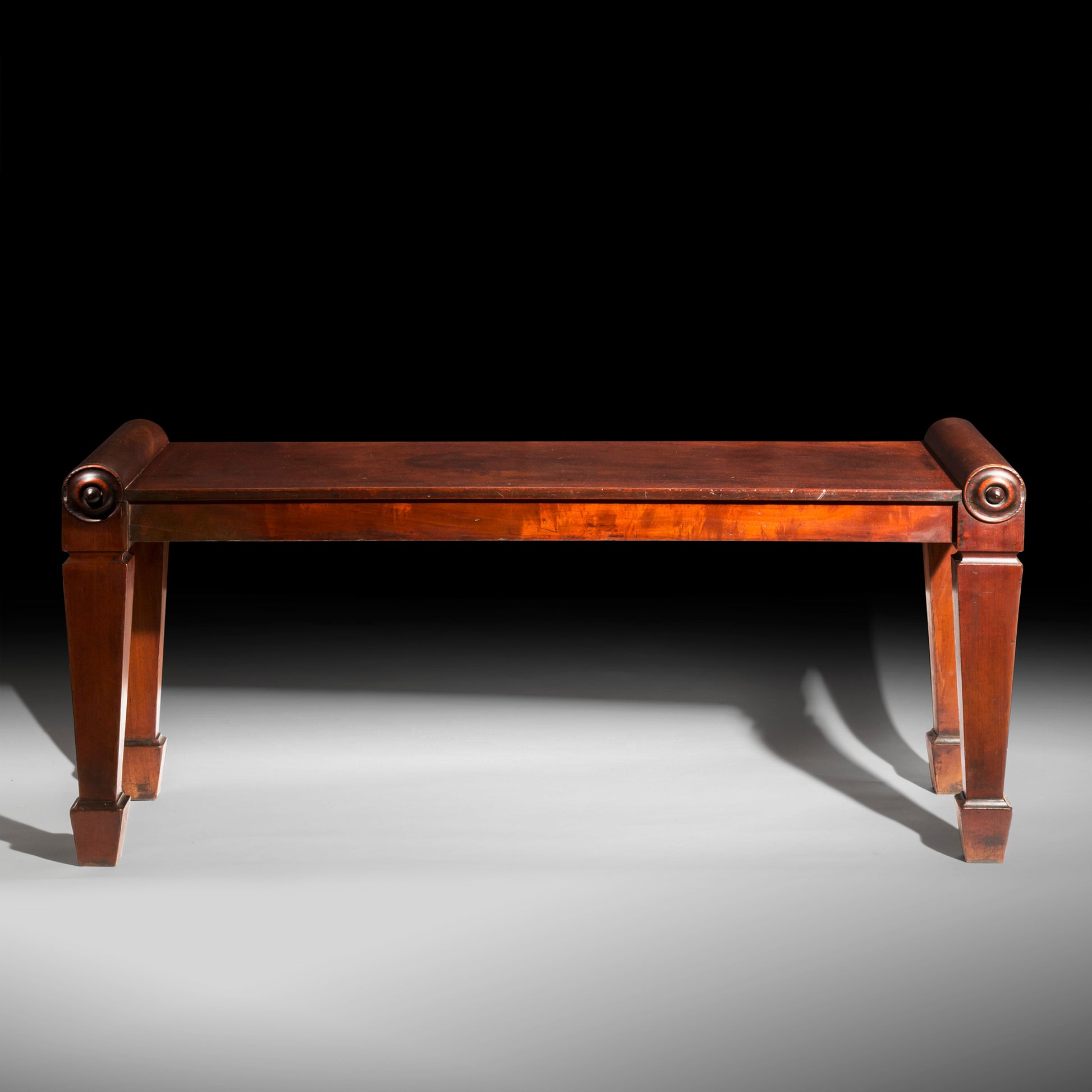 A rare and unusual, fine quality early 19th century English mahogany hall bench.