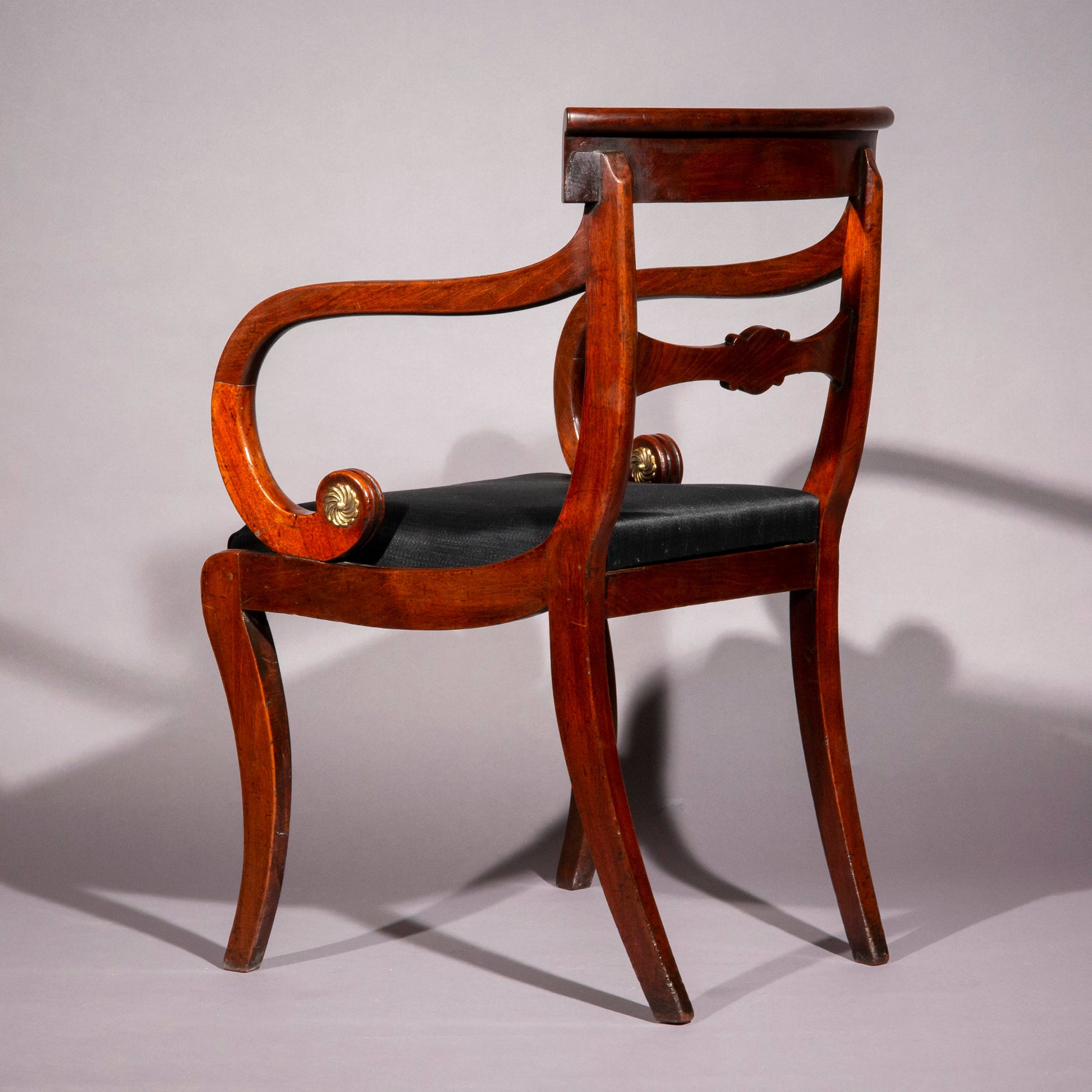 An elegant Regency period open armchair, of Grecian 'Klismos' outline