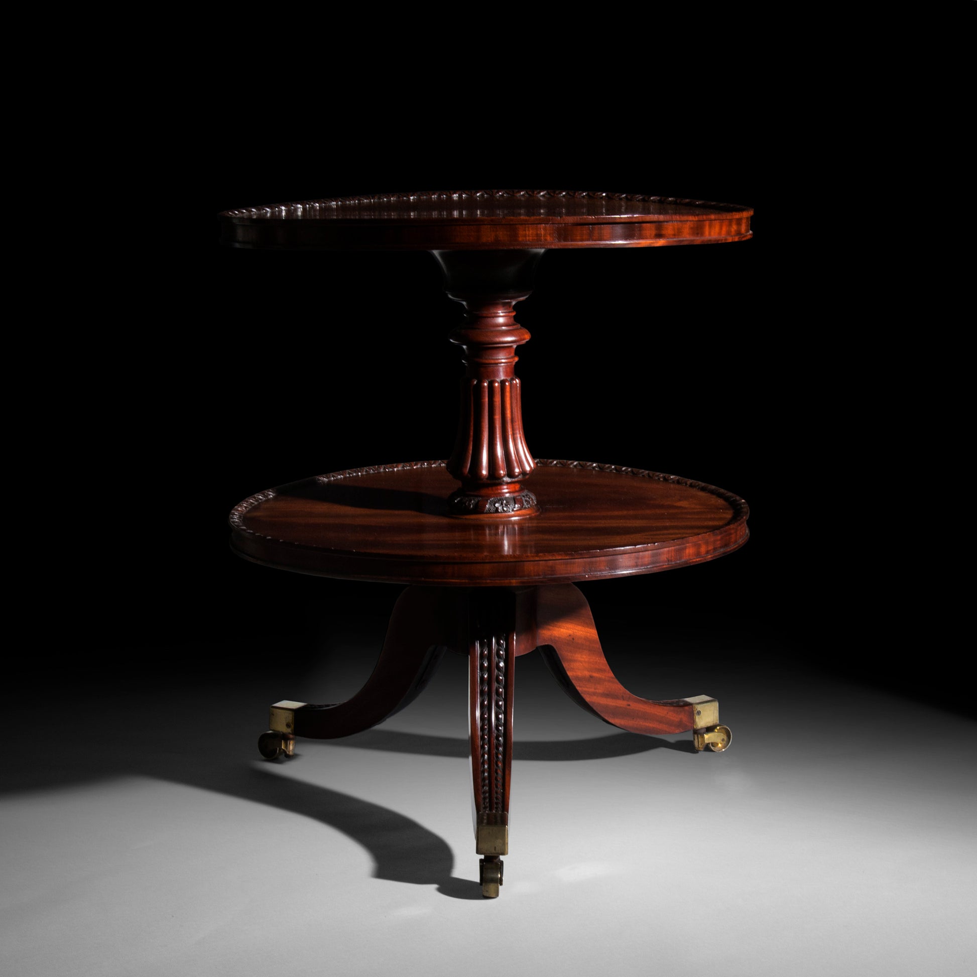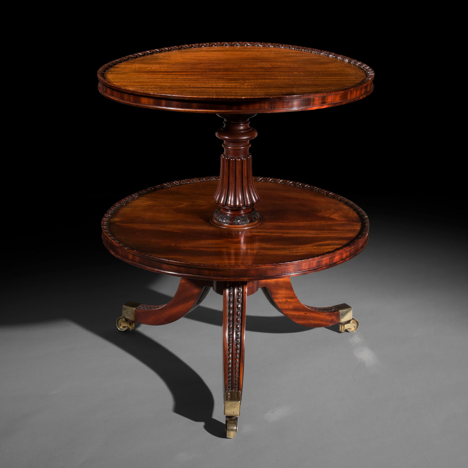 Fine Regency period mahogany two-tier table, of exceptional quality, attributed to Gillows of Lancaster and London,