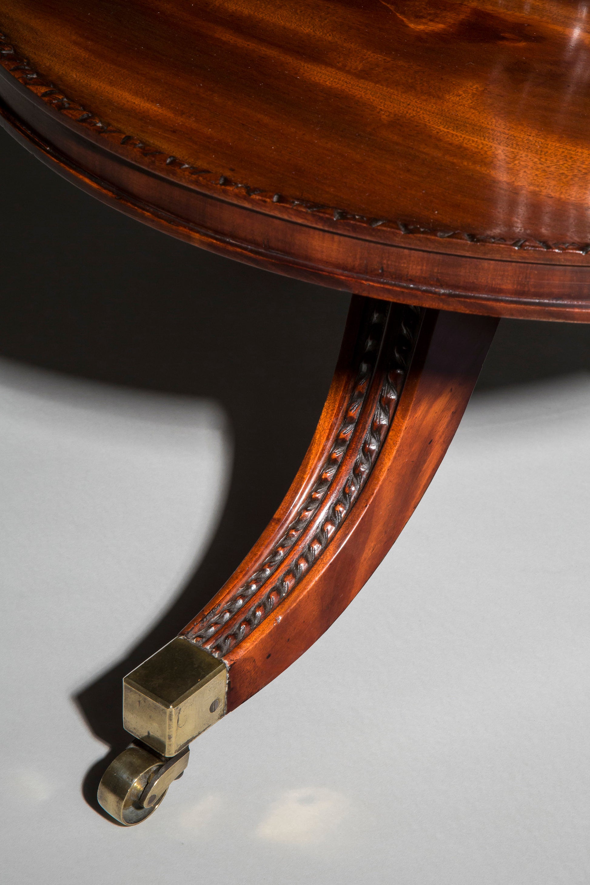 The present piece's design is invariably associated with the London and Lancaster firm of Gillows. A closely related design appears in the Gillows' Estimate Sketch books (Westminster City Archives) in 1826 (No.3556) supplied to Ferguson and Co. for Barton J., Esq., and in 1830, supplied to Mr. Bastard (No.3962). The superb construction and choice of timbers are also typical of Gillows.