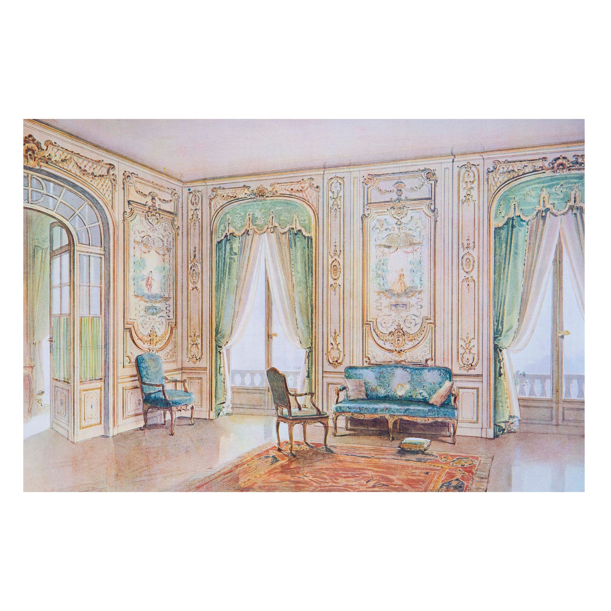 Alexandre Serebriakoff (1907–1995) was a celebrated French illustrator of Ukrainian origins, particularly known for his paintings of interiors. Together with his sister Ekaterina (Catherine) he managed to escape the bolshevik Russian terror and remained in Paris for the rest of his life. A largely self-trained artist, he predominantly worked in watercolour and gouache, producing highly realistic interiors in a traditional style. Serebriakoff became well-known as a specialist interior painter, specifically for his paintings of Paris' hôtels particuliers, painting Daisy Fellowes' rooms at the Paris Ritz in 1948 and the Parisian apartment of the Duke and Duchess of Windsor, Le Château de Groussay. During his lifetime the artist showed his work in numerous group exhibitions in France and Belgium. It is known that Alexandre's sister Catherine, who also worked as an interior painter, collaborated with her brother on many projects, however, her signature often does not appear on the artworks, as she preferred Alexandre to sign the paintings himself.