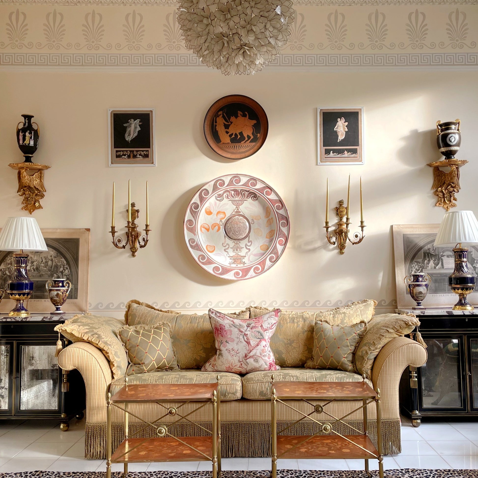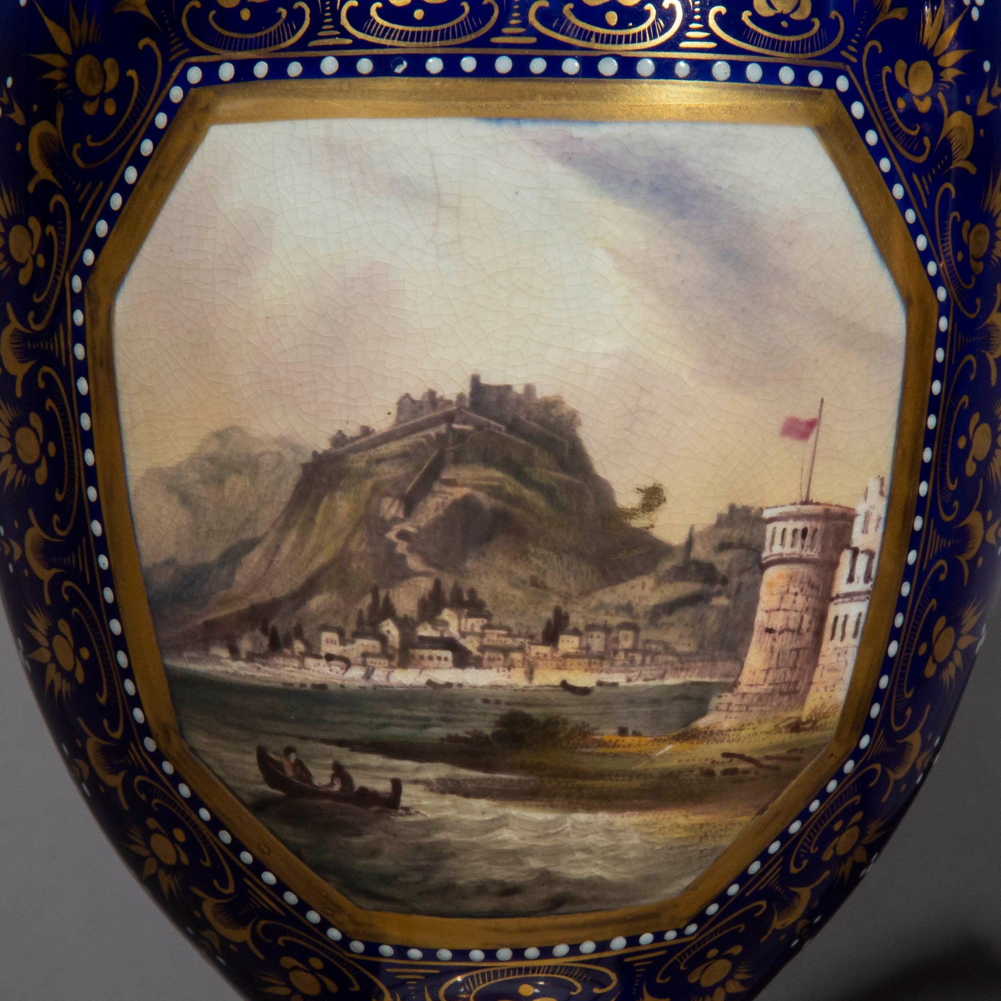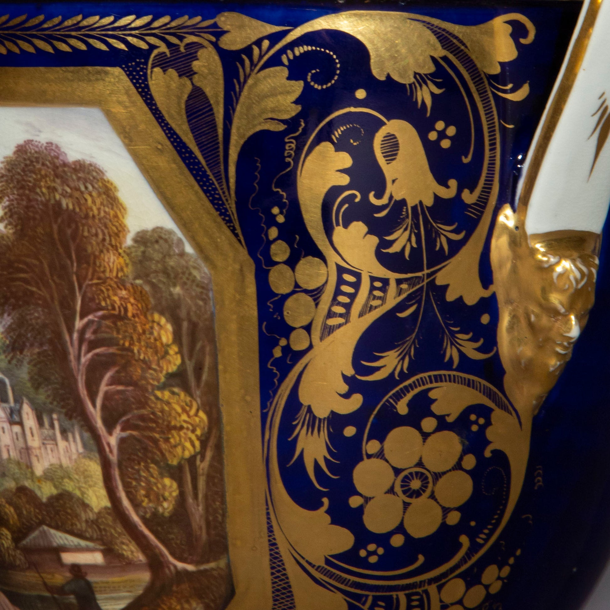 The gilding beautifully contrasts with the rich cobalt-blue ground, while the exquisite hand-painted Grand Tour landscape views add an extra layer of sophistication.