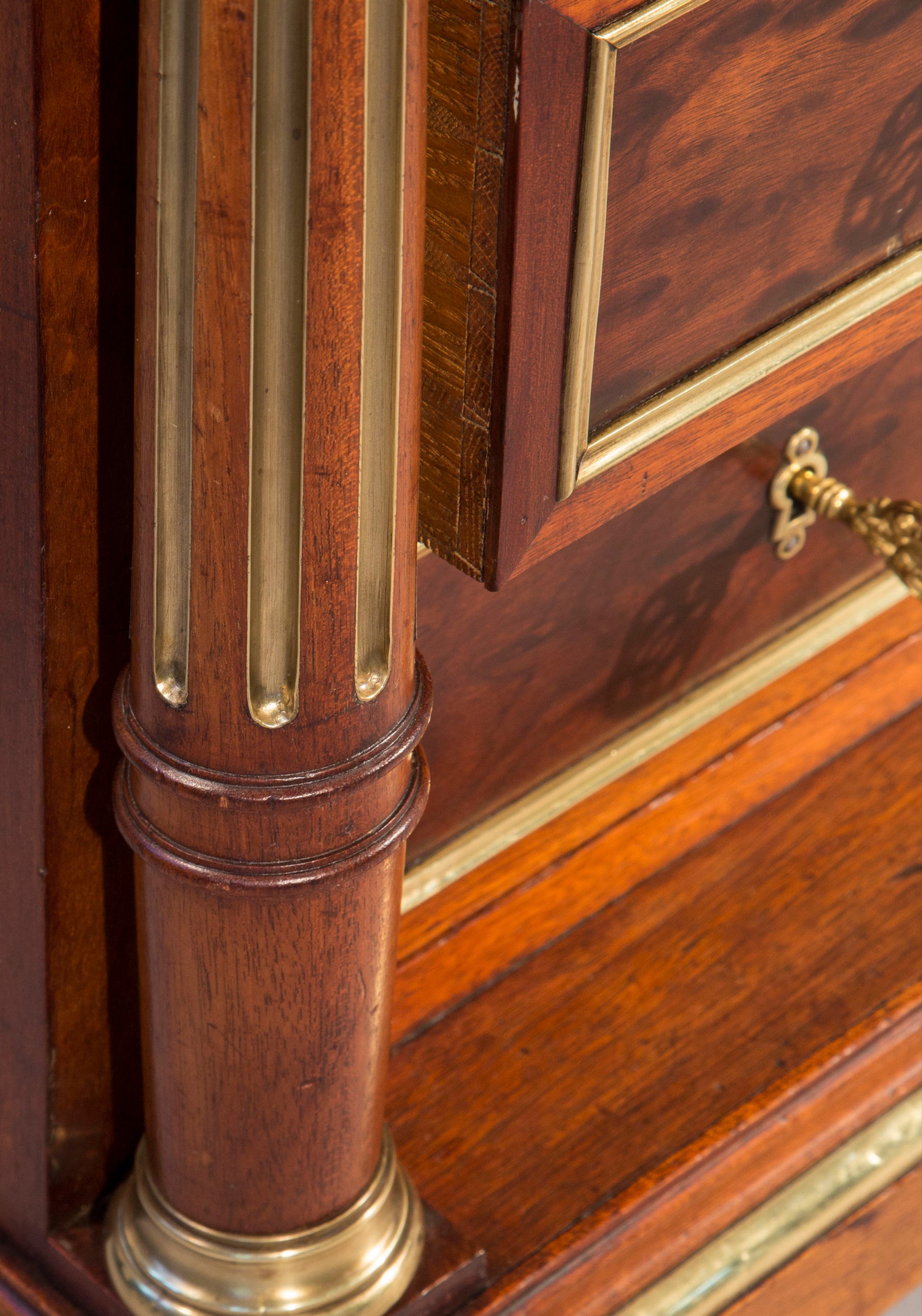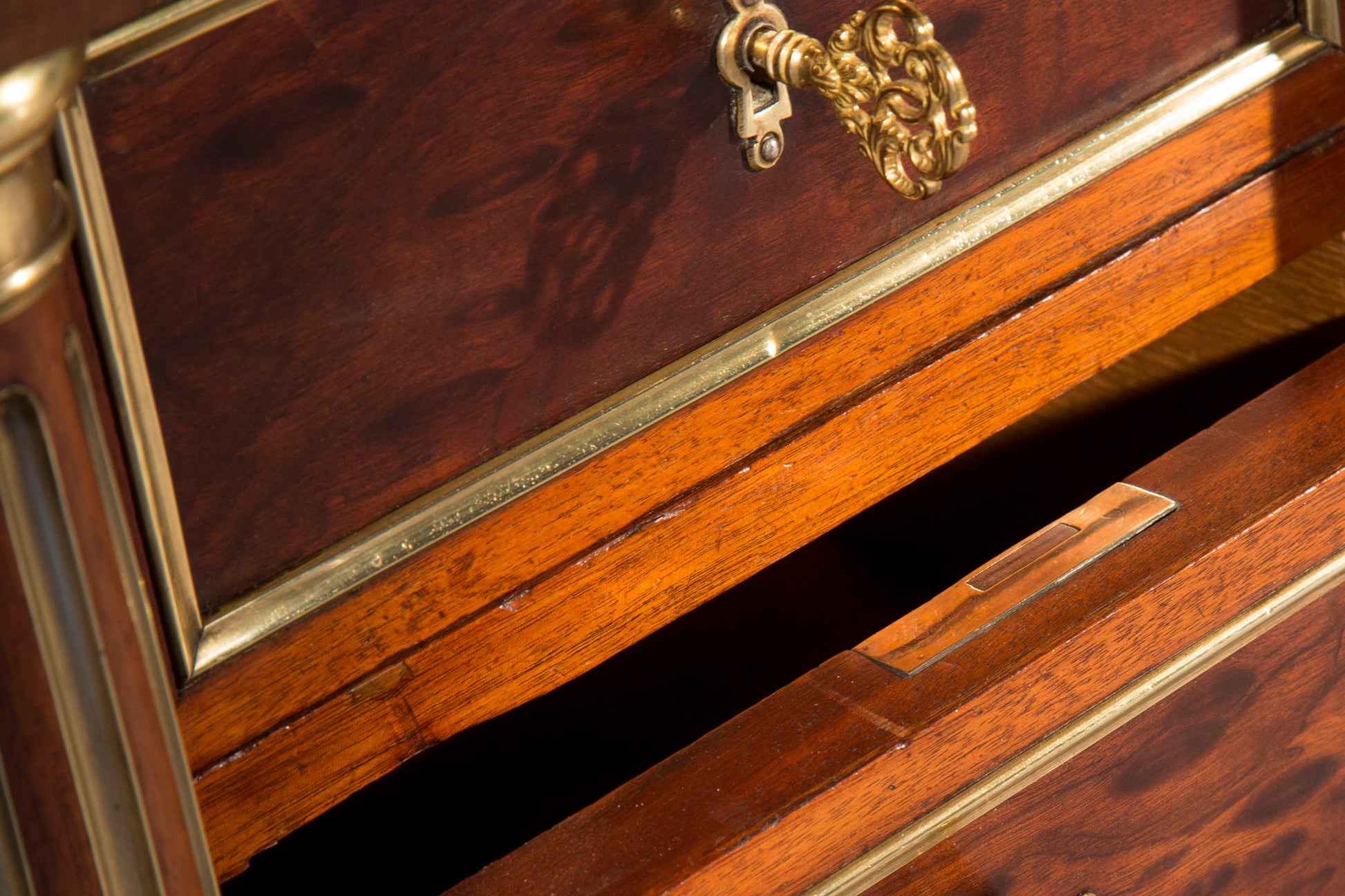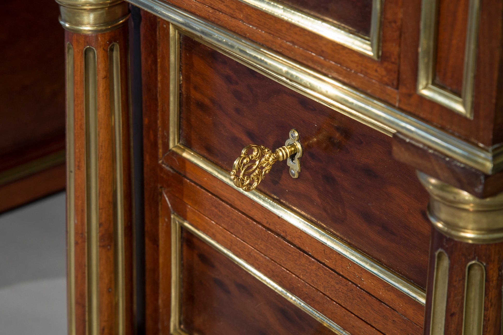 A fine quality 19th century Louis XVI style neoclassical desk in beautifully figured mahogany, enriched with brass mounts.
