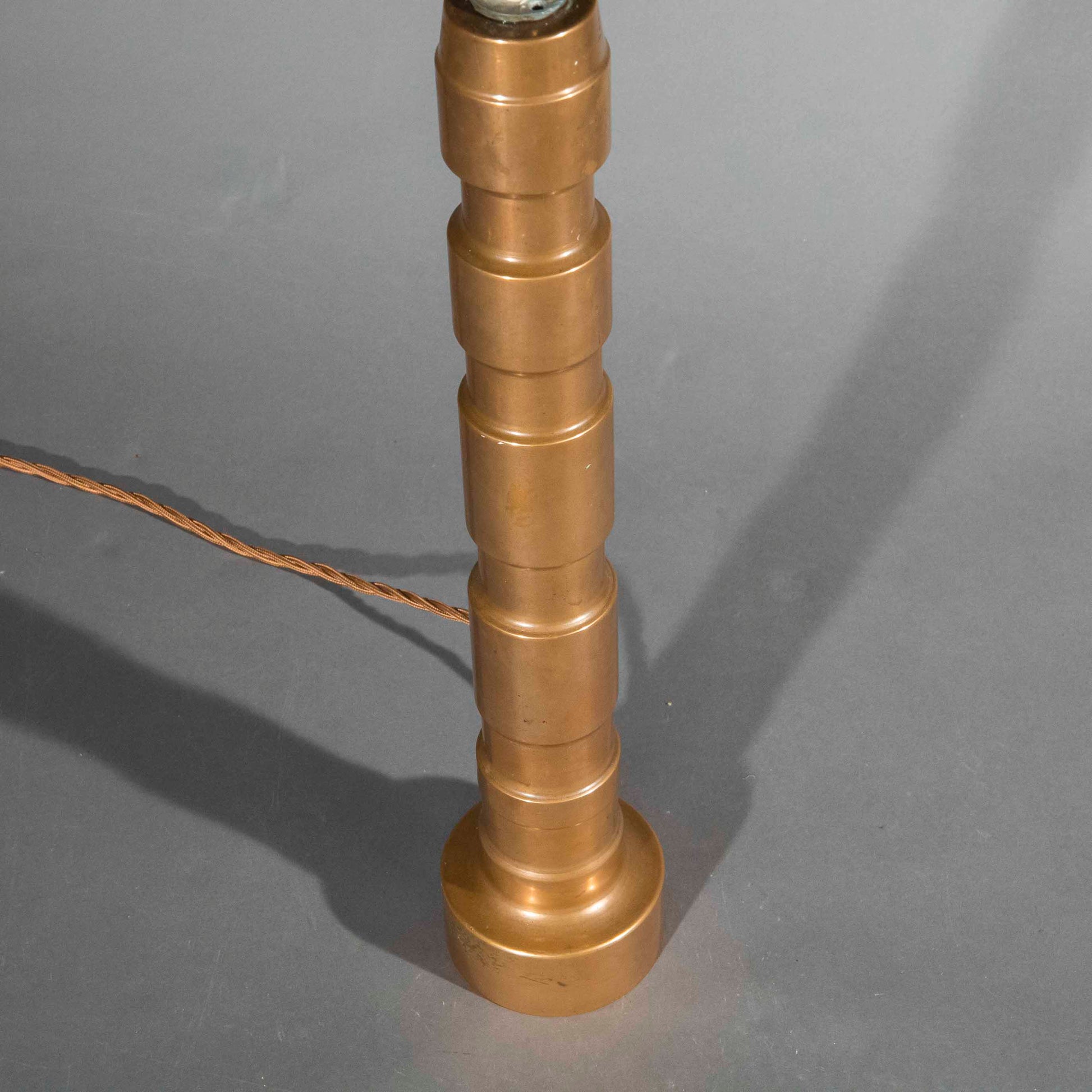 A superb heavy quality tall solid bronze column table lamp of industrial design. A slightly smaller similar lamp is available as well.