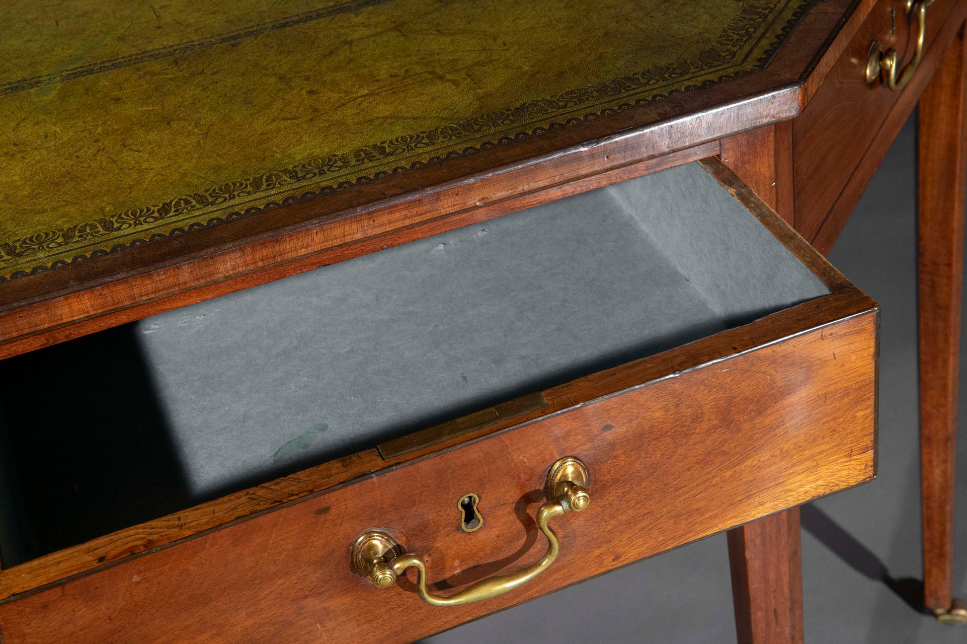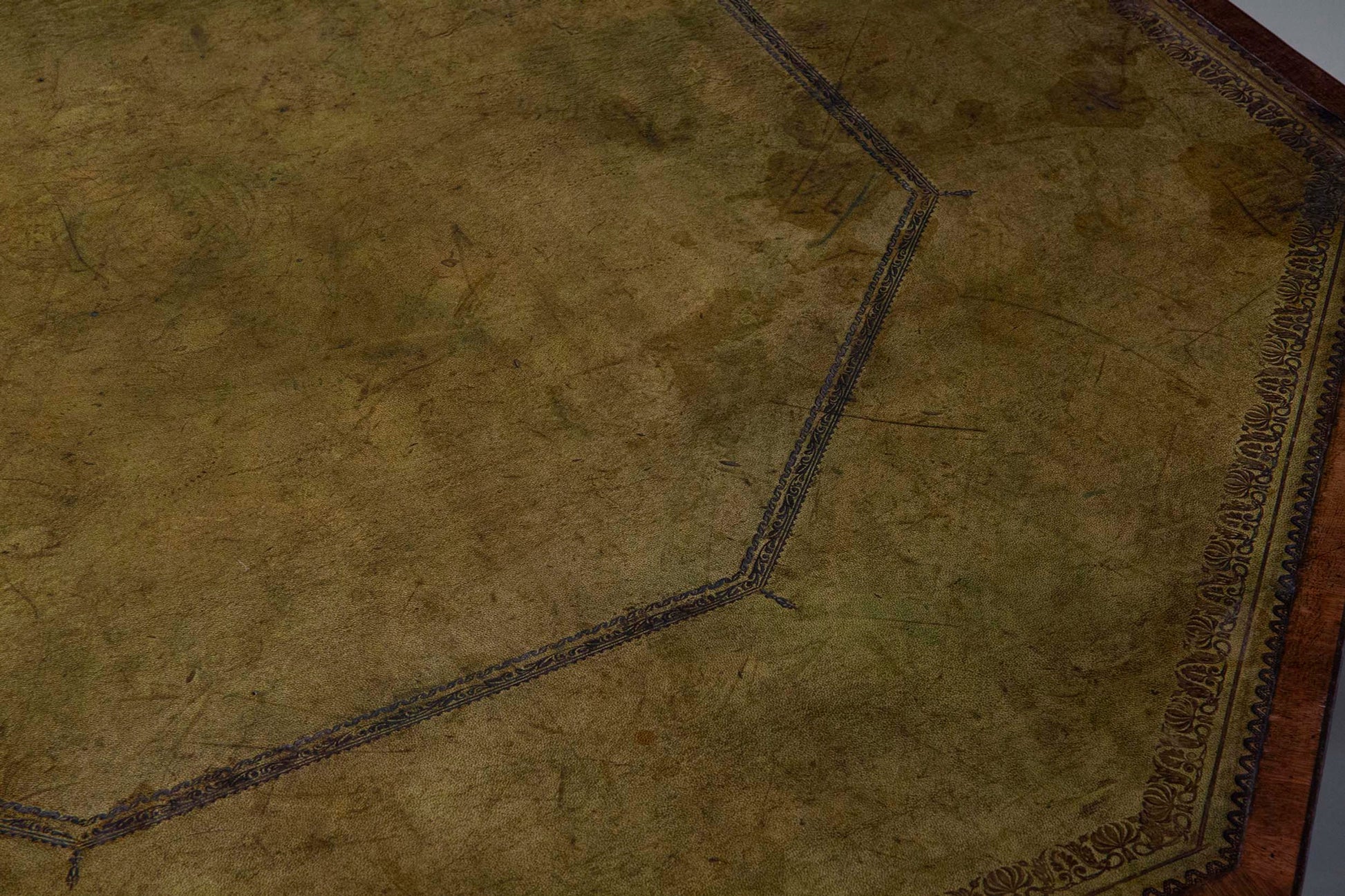An elegant late George III – early Regency period octagonal library drum table with aged green leather lined top and four drawers. English, circa 1800.