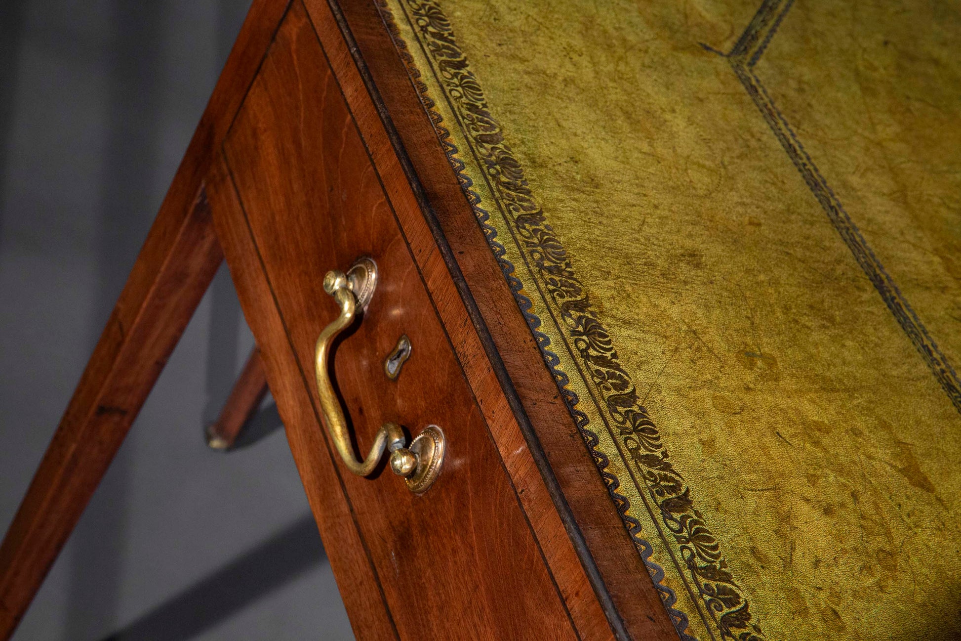 Unusual and elegantly understated, this table is useful and versatile with its green tooled leather-inset top and four drawers.