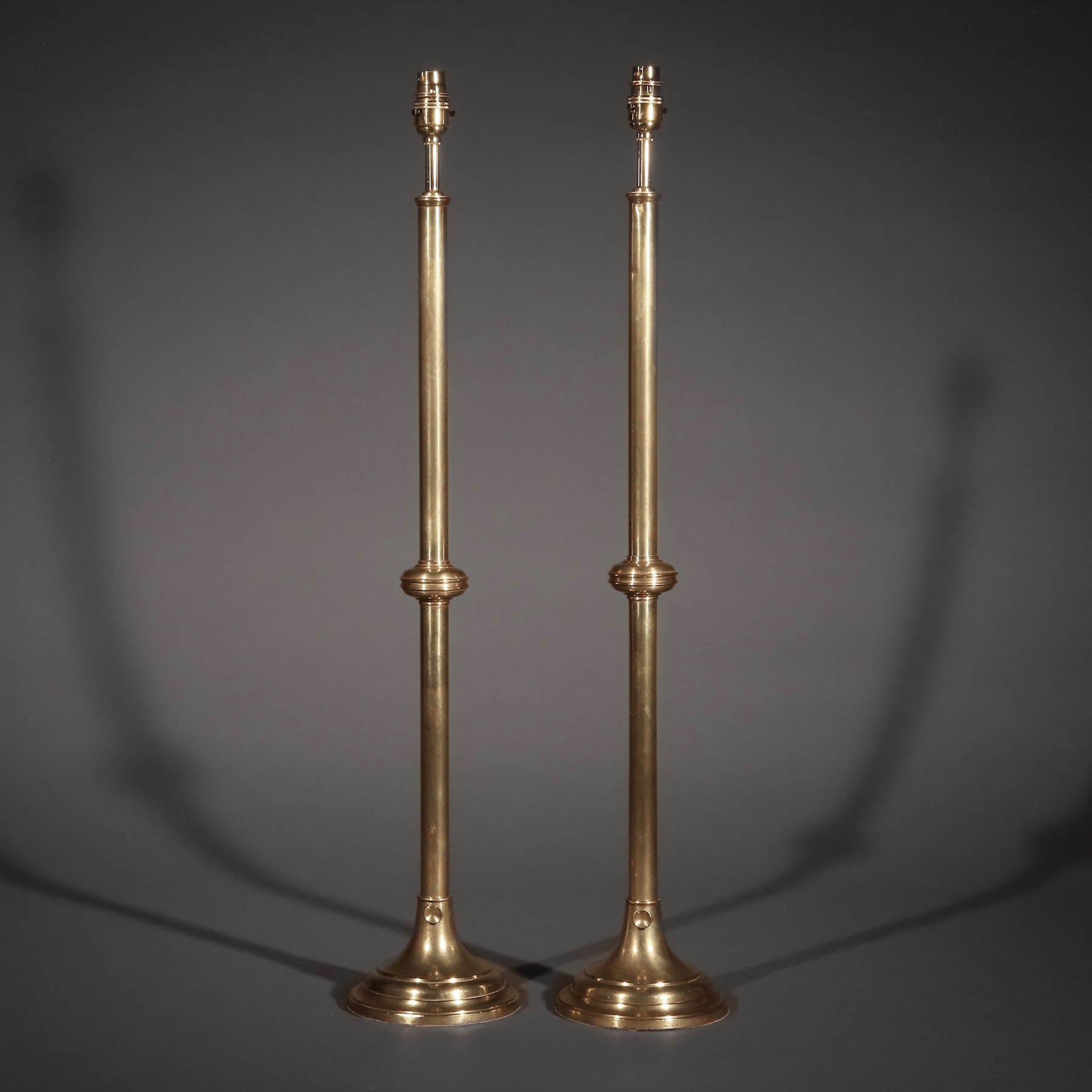 This wonderfully chic pair of lamps is simple and sophisticated at the same time. Their sleek stems with a 'kink' in the middle evoke 1960s retro-futuristic and spaceship motifs, rather than Georgian candlesticks, that they really were.