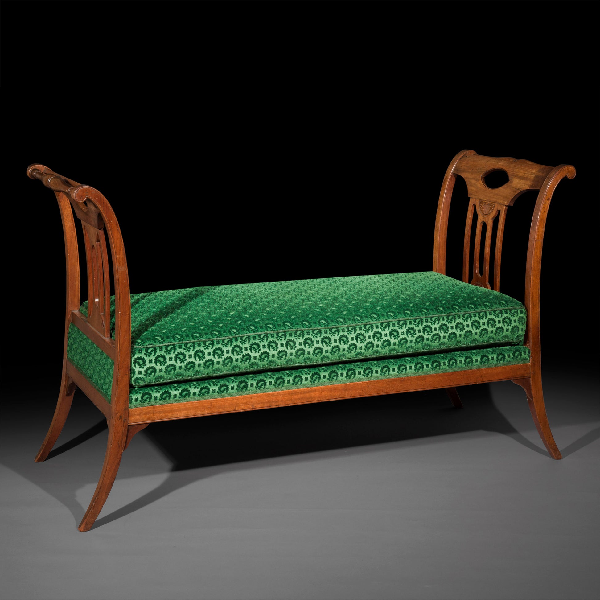 A fine French late 18th century Directoire period mahogany window seat, of great colour and rare generous proportions. Stamped G.Jacob. France, circa 1795.