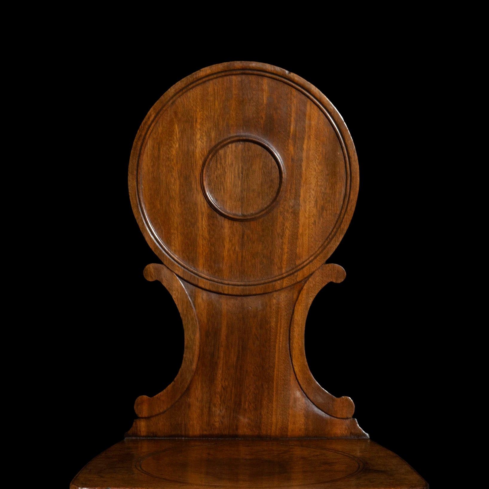 A fine pair of mahogany hall chairs of the Chippendale period,